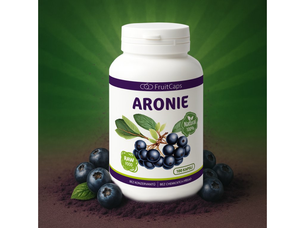 Obsah: 100 tobolek po 450 mg - Aronia melanocarpa. 3-5 kapslí denně jako doplněk k vaší stravě, potravinový doplněk, nenahrazuje pestrou stravu.